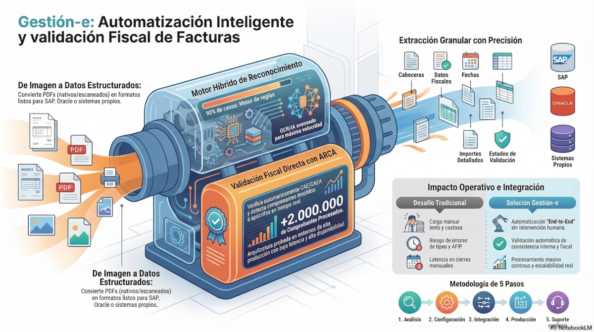 Nuestra teconología permite automatizar totalmente la carga de facturas electrónicas a partir del documento PDF emitido por su proveedor. Esto le permitirá optimizar su gestión de Cuentas a Pagar.